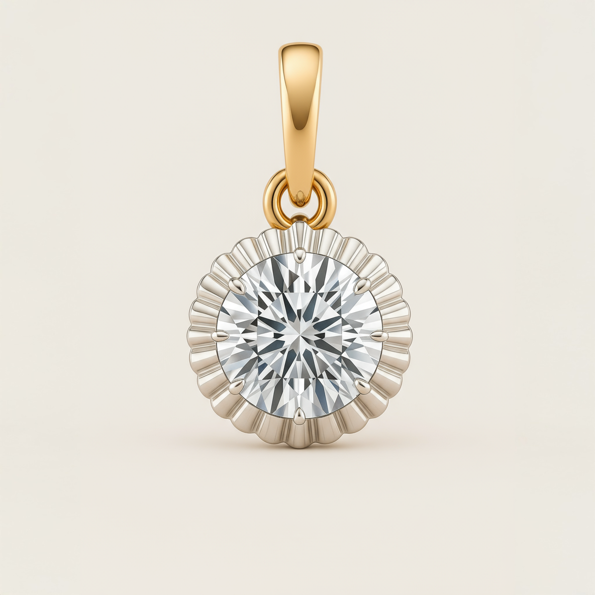 Crafted in platinum and 9kt yellow gold, it features a 1.00ct F VVS lab-grown diamond held in a fluted bezel — a modern heirloom that transcends trends.